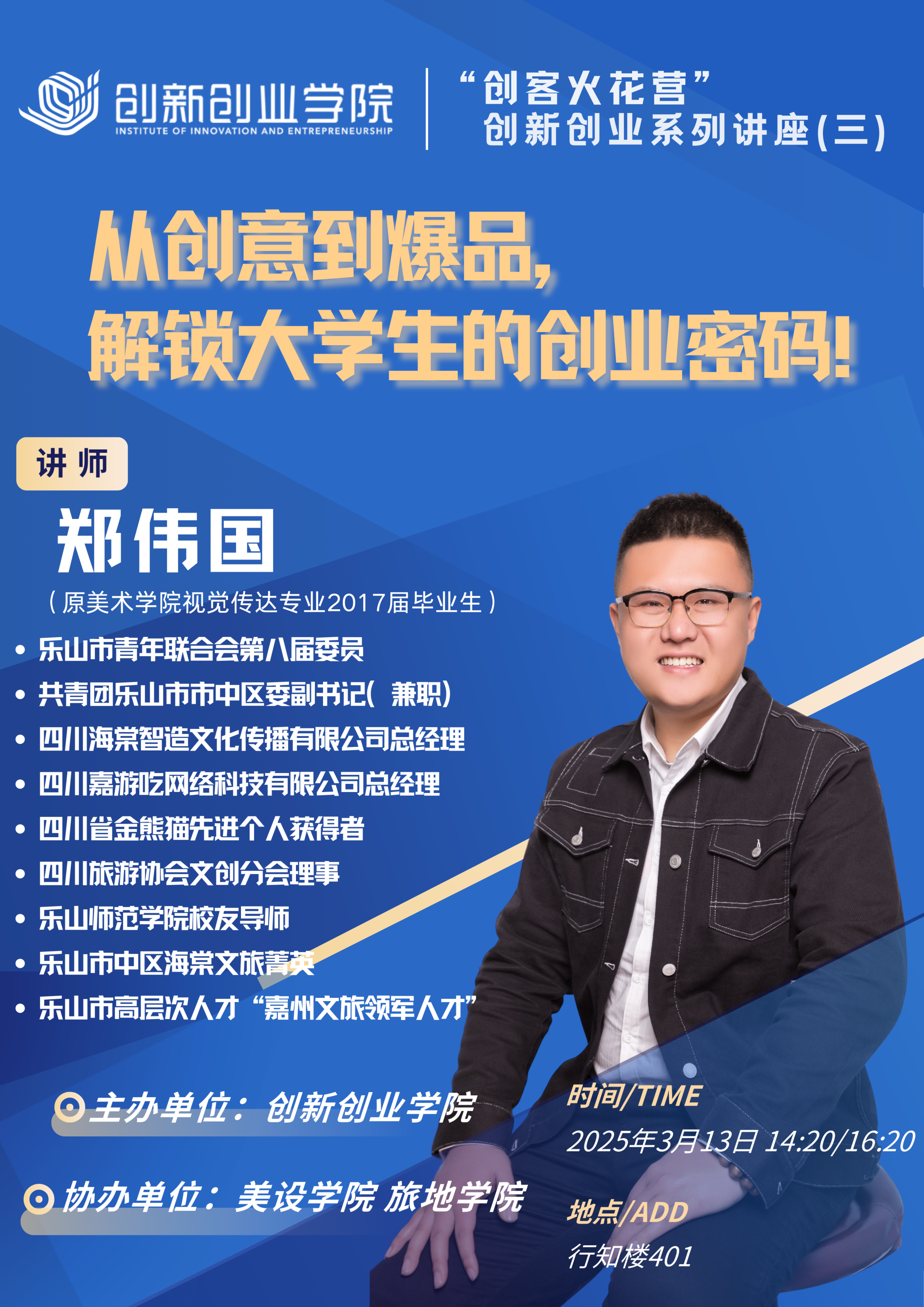 本网讯(文/李建 图/欧金彤 王佳佳)3月20日,bw必威西汉姆联分别在行知楼401、414和415举办“创客火花营”系列讲座。原自贡华侨城投资策划负责人...