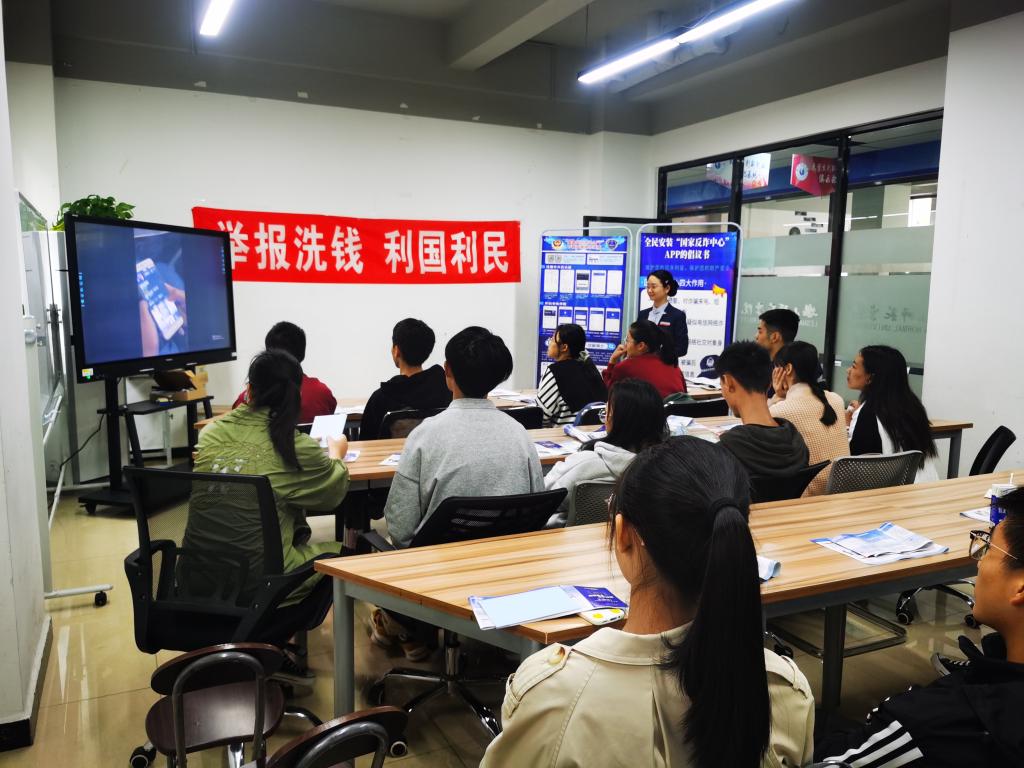 本网讯(文/蒋冲雨、图/黄琴)为增强大学生的防范能力,更好地守护好创业者们的“钱袋子”,2021年10月14日上午,乐山市商业银行携手bw必威西汉姆联在大学生孵化基地会议室开展“举报洗钱,利国利民”反诈防诈系列公益宣传活动。