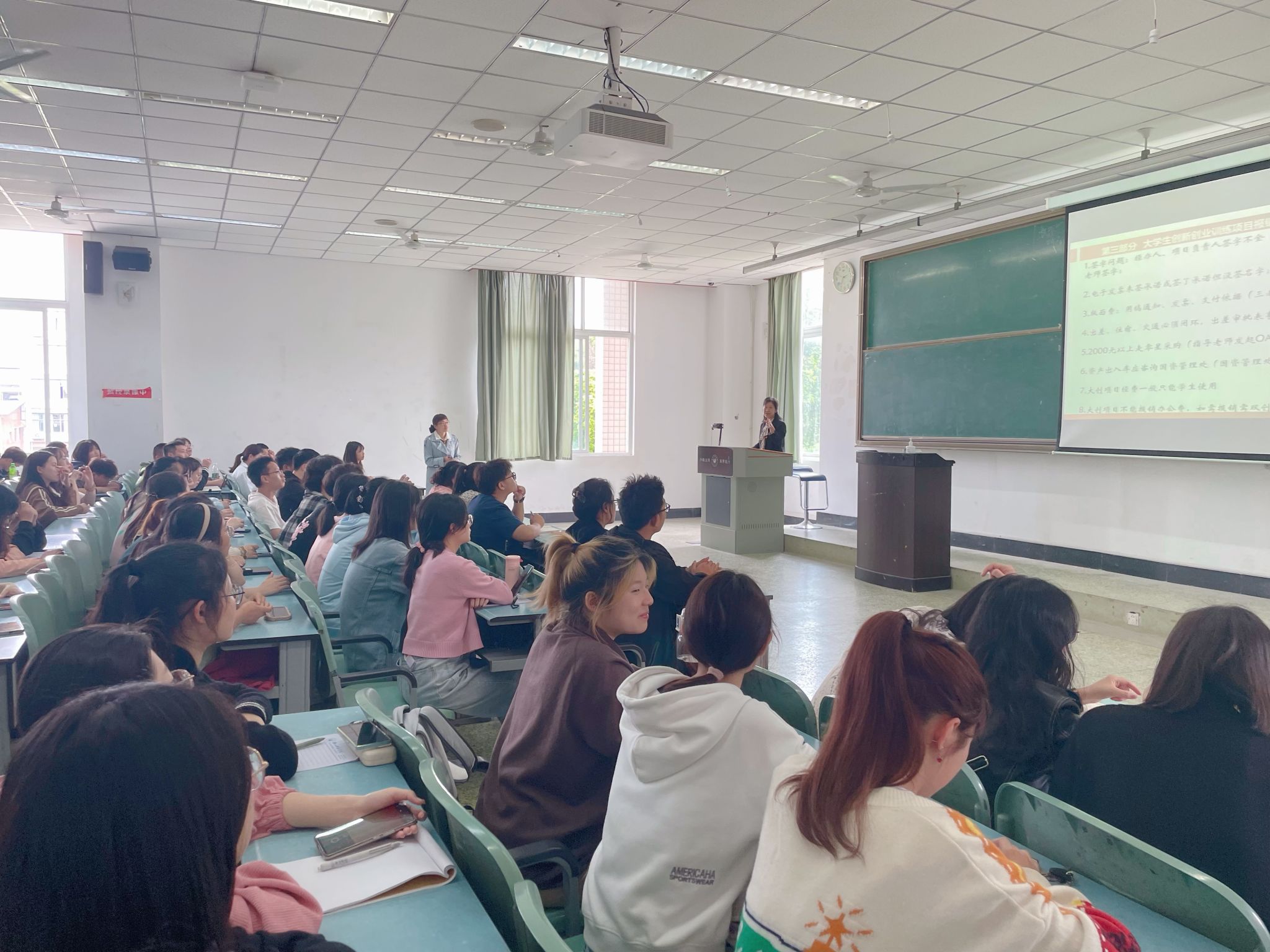 会议分别从创新创业训练项目的财务立项、差旅费报销制度及标准财务系统的使用等方面进行了财务宣讲,并归纳梳理了大学生创新创业训练项目报销单据的常见问题。在答疑解惑环节,同学们就版面费报销流程、对公转账支付的填报、结题后报销操作、劳务费发放等问题进行了现场咨询。计划财务处工作人员逐一耐心为同学们做了解答。