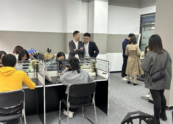 会后,蒋冲雨带领电商协会各位企业家到孵化园二楼进行参观、讲解。带领大家参观了文旅设计的独具匠心,也慰问了大学期间兼职的同学们,与正在创新创业的大学生进行了探讨。此次宣讲侧重于为鼓励激发大学生创新创业的热情,推动电商协会与双创学院积极合作,确保进一步链接短视频行业与大学生的关系,乃至大学生能在其他行业以自我认知走得更远。