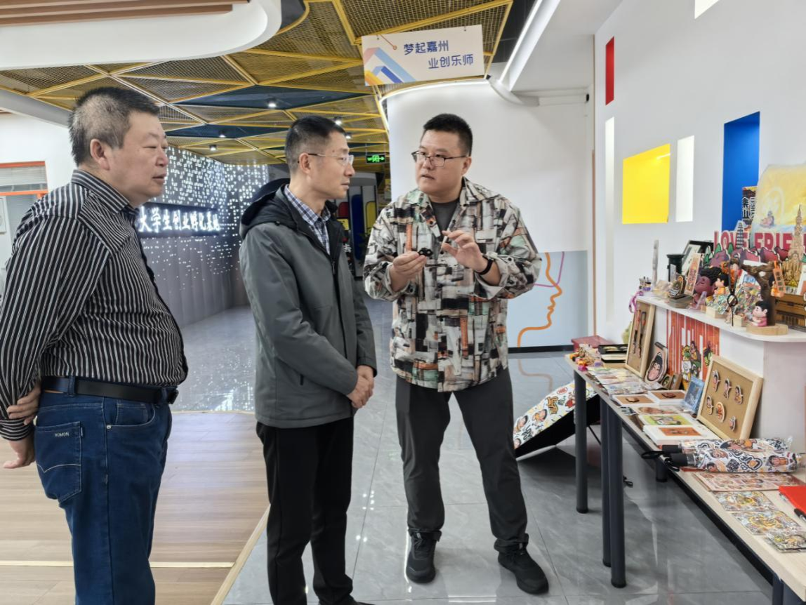 彭瑾院长对学院课程建设、竞赛项目和孵化园运营情况做了简要介绍,并带领李主席等人参观了部分创业团队工作室。乐乐邮局、齐妙文化传媒有限公司、记尘烘焙等项目负责人向李主席介绍了各自的业务范围、运行模式、营收状况等。李主席对团队成员们的创业激情和实干精神表示了充分的肯定,鼓励大家继续敢闯敢创,用好孵化园的硬件保障和政策支持,力争取得更大的成绩。