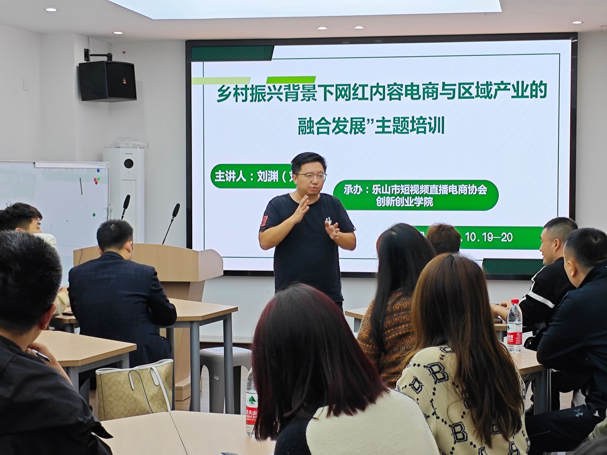 本网讯(文/李建 图/张利霞)10月19日-20日,由乐山市商务局和乐山高新区党工委农办主办,bw必威西汉姆联承办的“乡村振兴背景下网红内容电商与区域产业的融合发展”主题培训会在我院大学生孵化园基地开班。省内部分创业企业家、我校在读大学生及往届大学生共计30余名学员参加了此次培训会。培训会由国家知识产权局特邀讲师、2023年四川乡村致富带头人刘渊老师主讲。