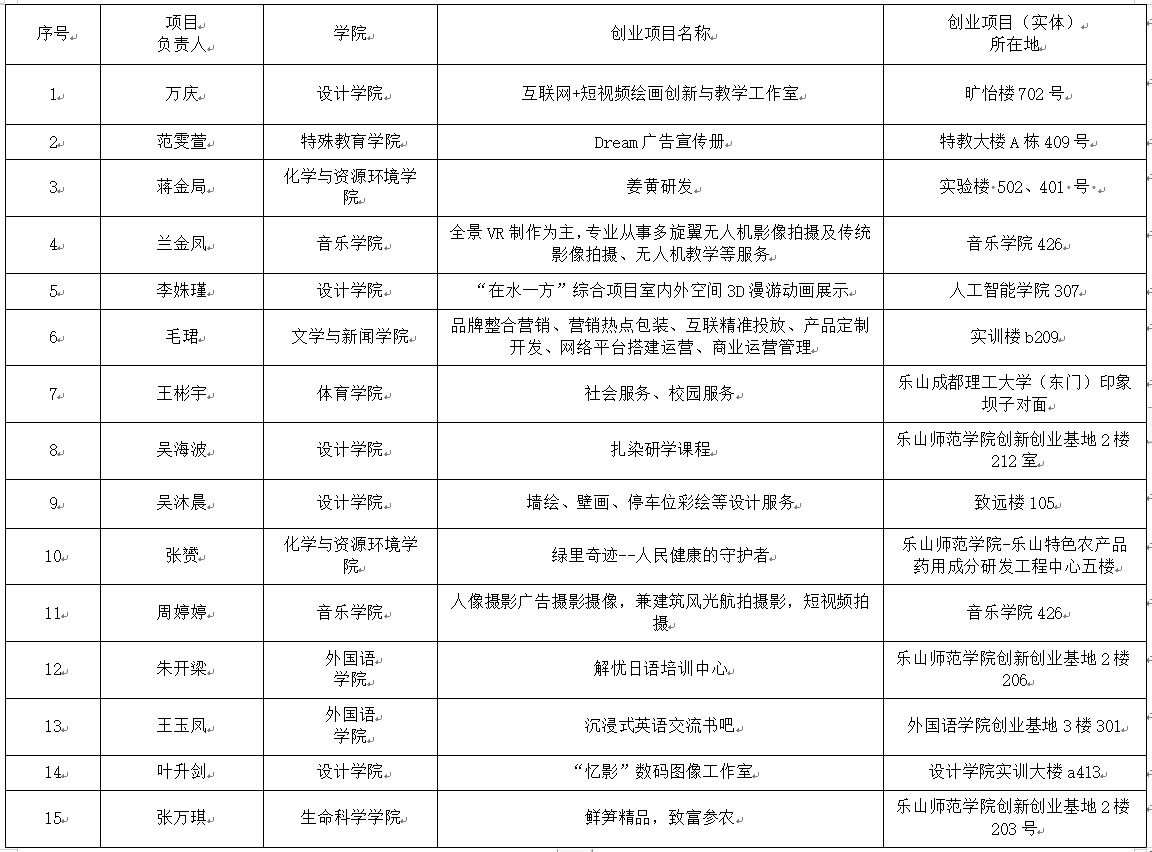 根据四川省《关于贯彻落实省政府办公厅加大力度促进高校毕业生就业创业意见有关问题的通知》(川人社发[2014]20号),《关于调整高校创新创业平台内创业补贴审核发放工作的通知》(川人社办发[2015]139号),以及《乐山市就业创业促进中心关于开展2021年在校大学生创业补贴初审的函》的文件要求,必威西汉姆联2021年(上半年)大学生创业项目补贴申报经过各教学院初审、学校复审、乐山市就业创业促进中心组织专家现场评审等环节,共15项创业项目通过专家现场初审并拟进行推荐。现公示如下:
