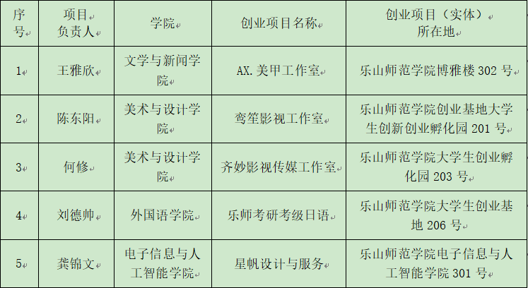 据四川省《关于贯彻落实省政府办公厅加大力度促进高校毕业生就业创业意见有关问题的通知》(川人社发[2014]20号),《关于调整高校创新创业平台内创业补贴审核发放工作的通知》(川人社办发[2015]139号),以及《乐山市就业创业促进中心关于开展2023年在校大学生创业补贴初审的函》的文件要求,必威西汉姆联2023年(上半年)大学生创业项目补贴申报经过各教学院初审、学校复审、乐山市就业创业促进中心组织专家现场评审等环节,共5项创业项目通过专家现场初审并拟进行推荐。现公示如下: