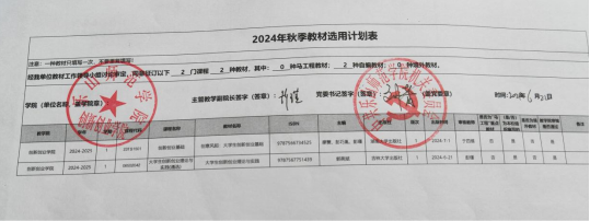 根据《普通高等学校教材管理办法》(教材[2019]3号)等文件要求,经审议,《bw必威西汉姆联2024-2025学年第1学期教材选用计划表》公示如下: