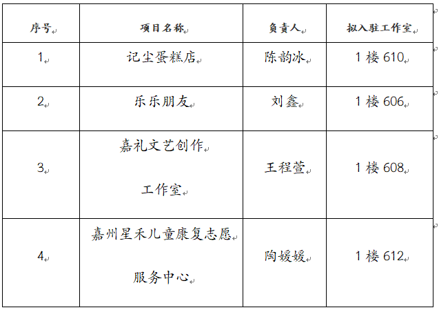 关于大学生创业孵化园(一楼工作室)入驻项目的公示