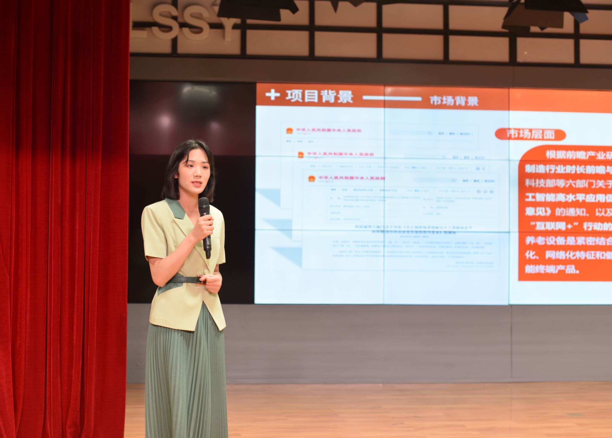 首先,创新创业副院长任素梅发表讲话,总结了我校“互联网+”今年的备赛情况,并预祝我校2023年“互联网+”大学生创新创业大赛圆满成功。按照评审规则,经过校外专家评审,最后16项项目突出重围进入决赛,本次大赛分为5分钟项目路演,3分钟项目答辩,在这宝贵的8分钟里,各组选手以生动活泼、严谨干练的方式各显风采。他们拼搏的创新创业精神,精彩的路演现场得到了在场评委专家和嘉宾的一致认可。