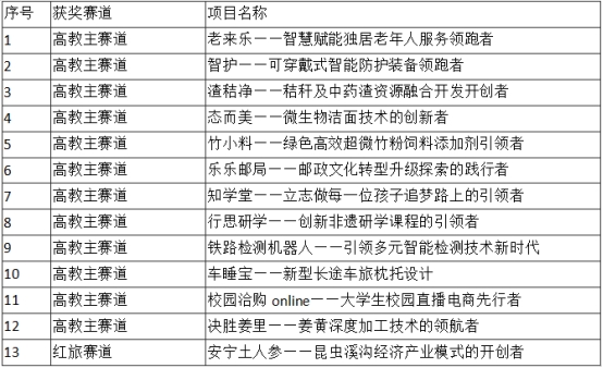 另外,我校还有13个参赛项目获得四川省国际“互联网+”大学生创新创业大赛铜奖,分别是: