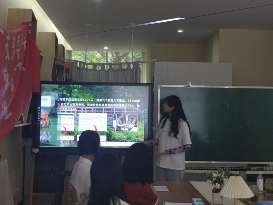 然后便是同学们带着自己的创业项目进行讲解。第一个是“绿意回流”项目,用绿植来回收二手书籍,第二个是“基于5G技术的校园生活健康状态采集平台”项目,用科技技术来对一些麻烦的事情进行方便的管理,第三个是“创智空间科技有限公司——中小学STEAM教育科技服务中心”项目,协助“双减”教育转型,助力素质教育。