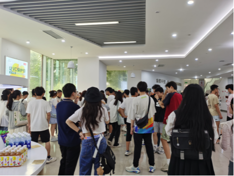 农夫山泉生产基地是一个集科研、开发、生产、营销为一体的饮料深加工企业,拥有现代化的高科技设备、全自动化的生产流程。讲解员带领同学们来到可以看到整个生产环节的全透明参观长廊,欣赏农夫山泉的整个生产过程,在整个生产过程无需人工接触产品,每道工序在机械化的操作下,完成效率极高。